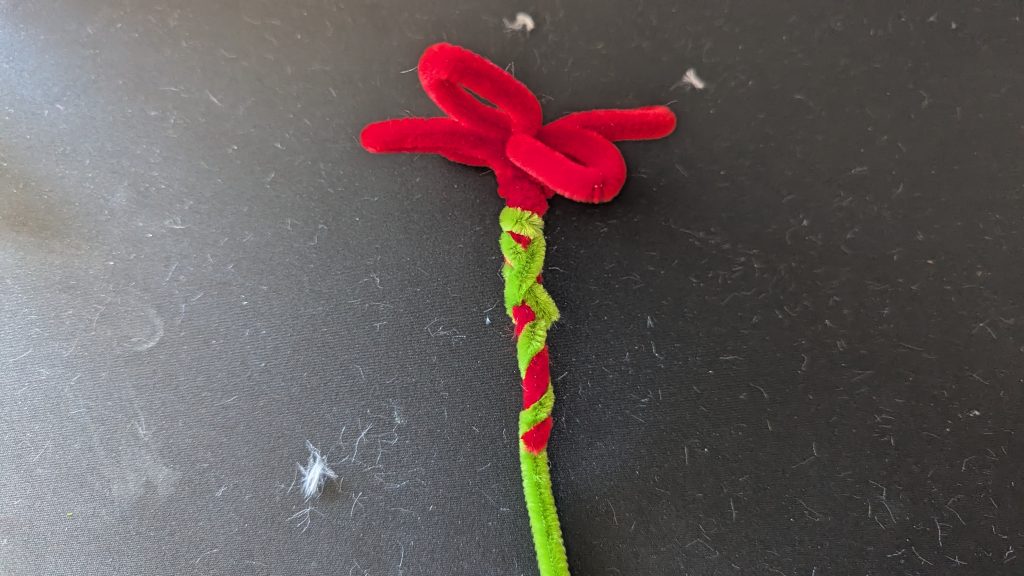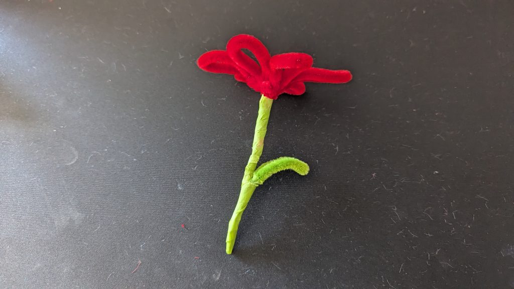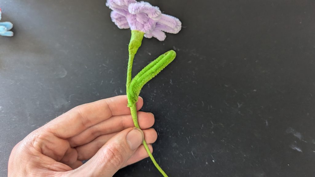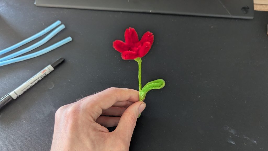 Step 4: Add a stem and twist part of the green pipe cleaner to create a small leaf.