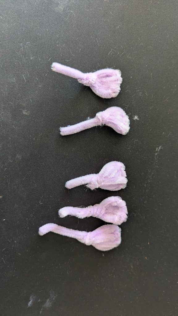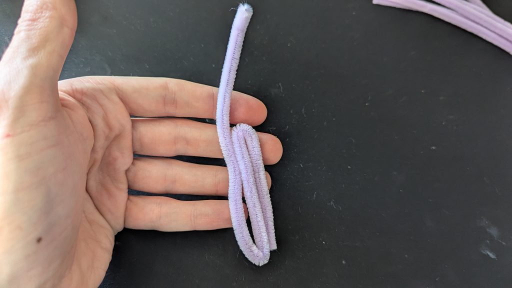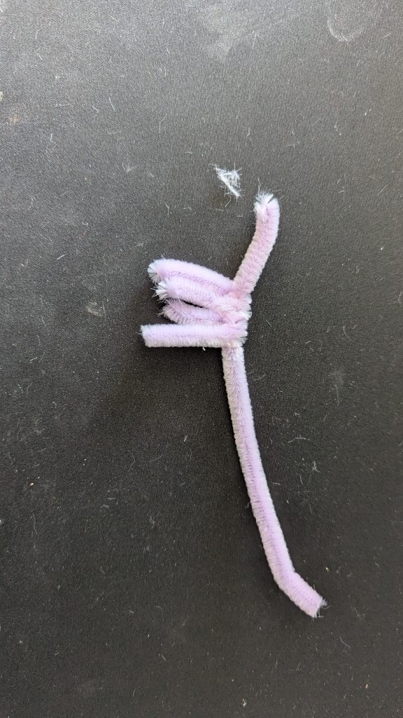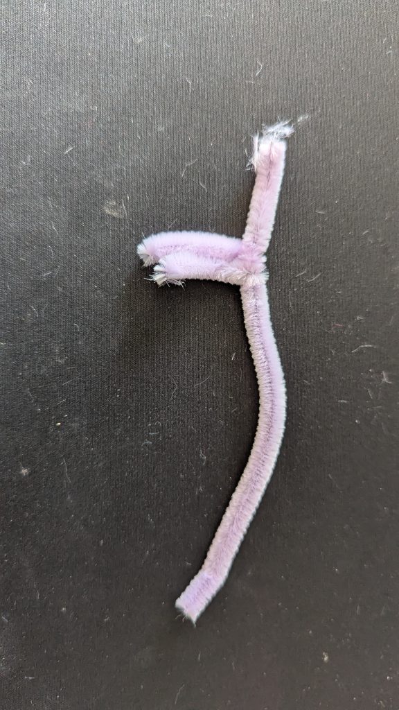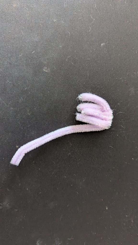 Step 1: Fold the purple pipe cleaner as shown (into sections for petals).