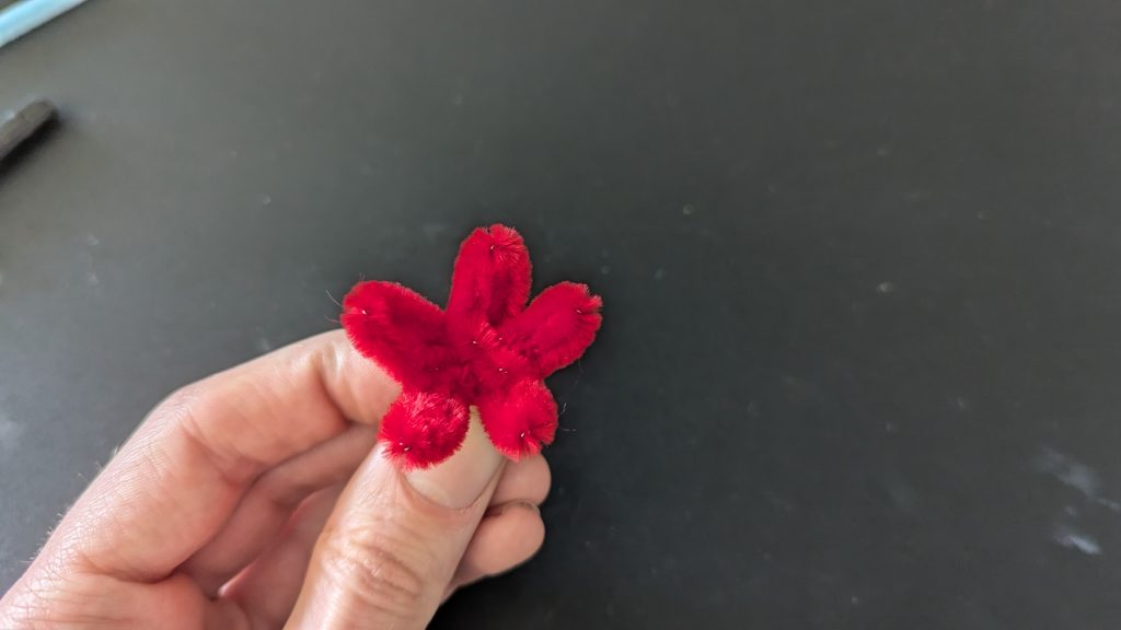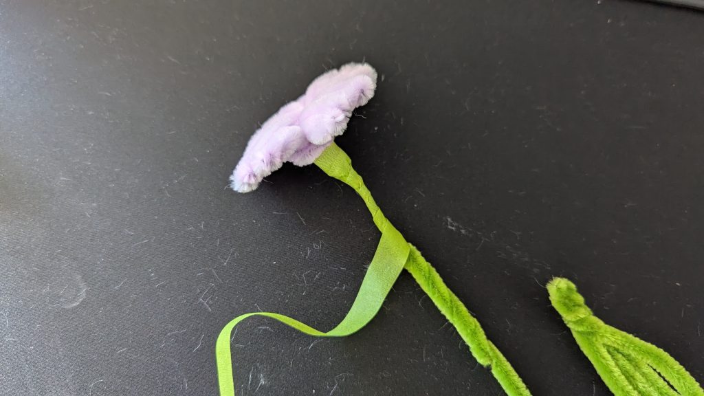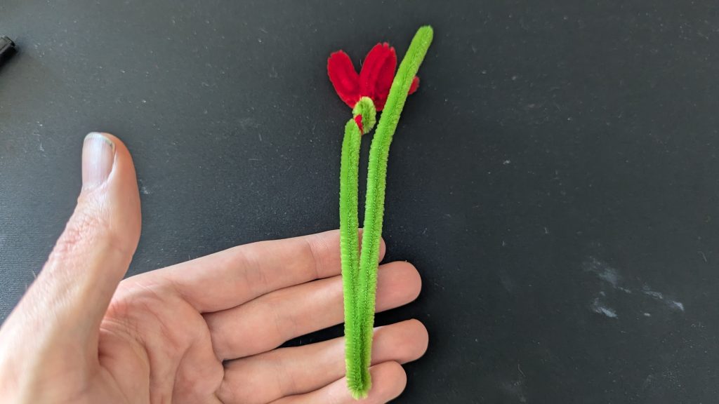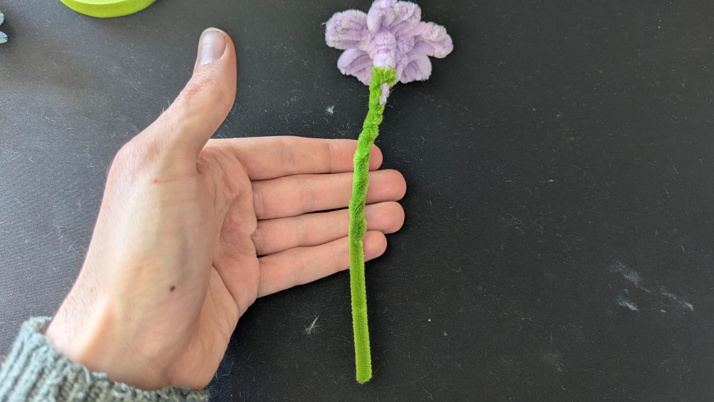 Step 5: Add the green pipe cleaner to the base of the flower to form the stem.