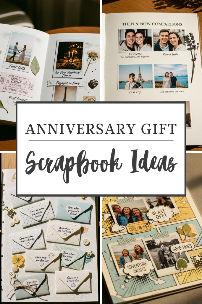 A “Then vs Now” couple Scrapbook is one of the most powerful anniversary DIY ideas. Start with your very first photo together and pair it with a recent one. Add captions about how you’ve grown. Not just in looks, but in love.