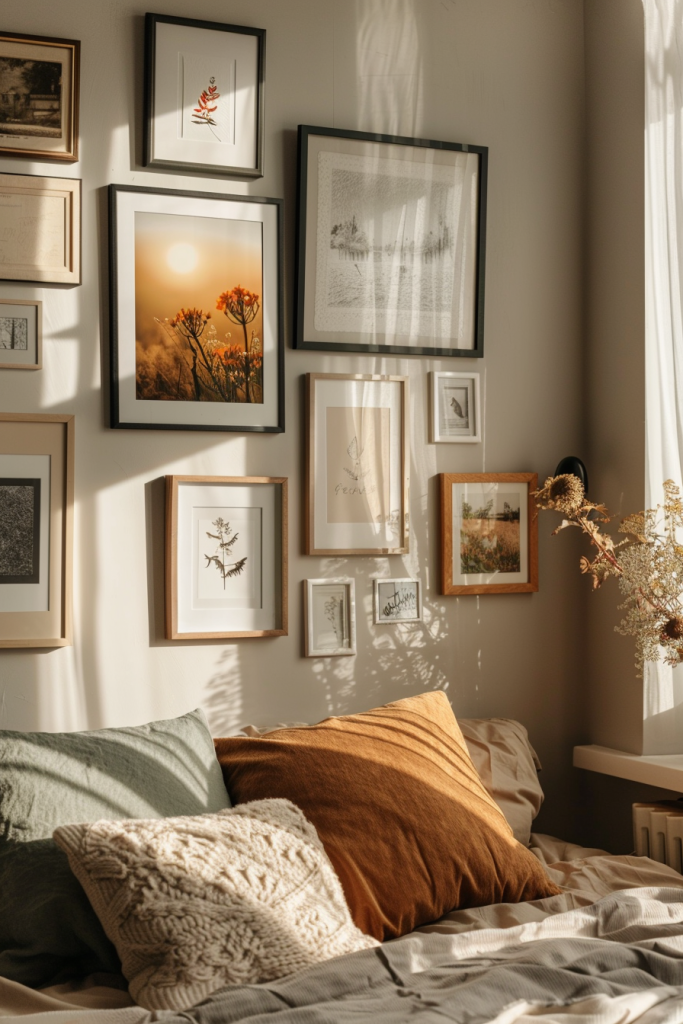 Tip: Mixing frame colors black, white, and natural wood almost always looks better than matching everything perfectly.