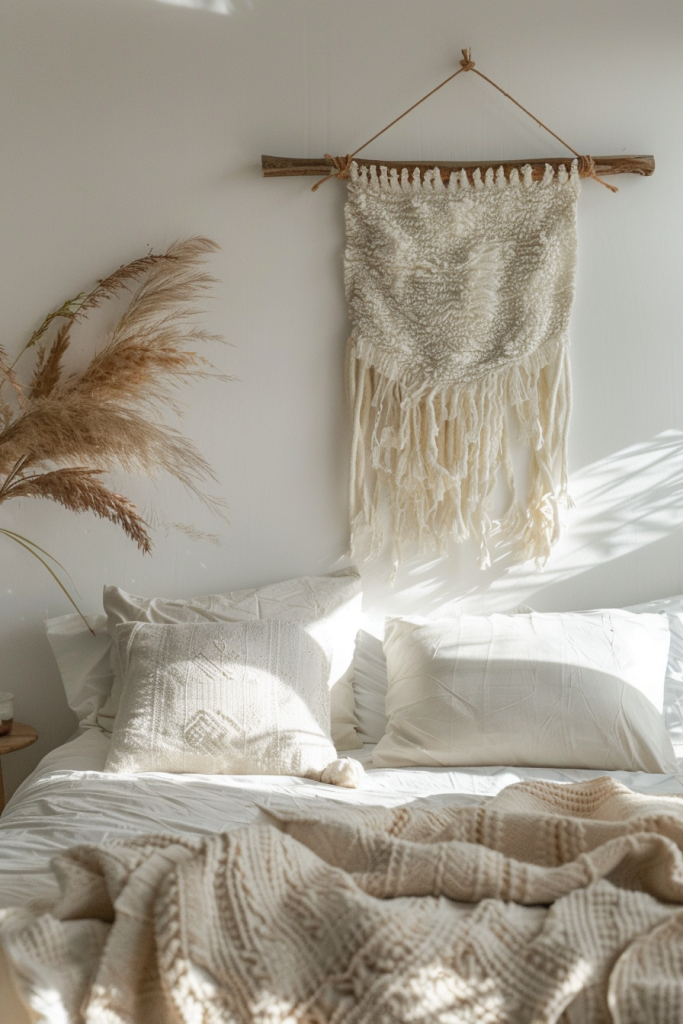 A fabric wall hanging adds texture that flat wall art simply can’t. It’s one of the quickest ways to get a boho or aesthetic bedroom feel without buying anything expensive.