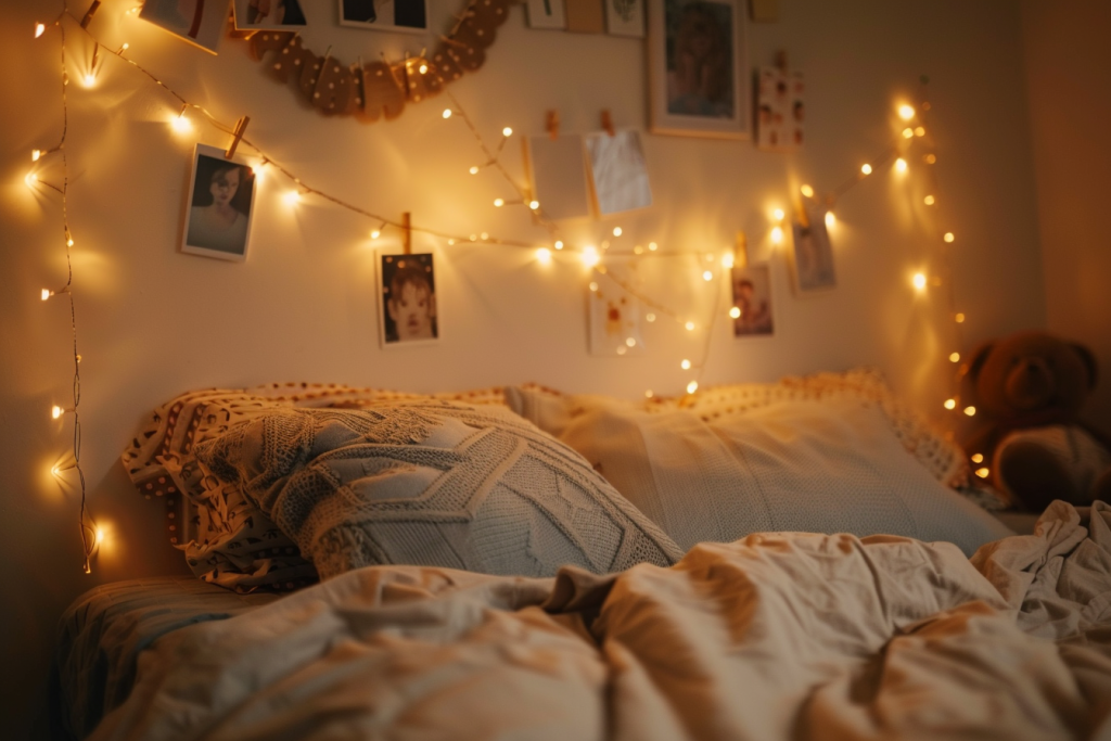 This is one of the easiest and most impactful things you can do for a bedroom. String lights make any space feel warmer and more personal. Adding your own photos turns them into something truly unique.