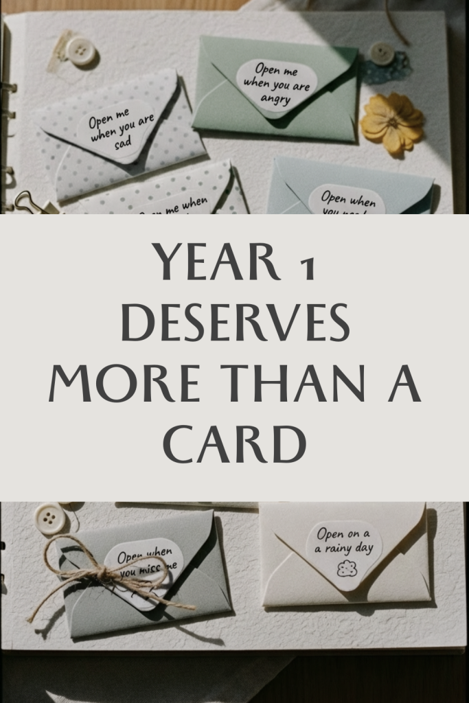 A first year anniversary scrapbook isn’t about being a perfect crafter. It’s about showing up and saying: I noticed this year. I saved proof of it. Here it is.