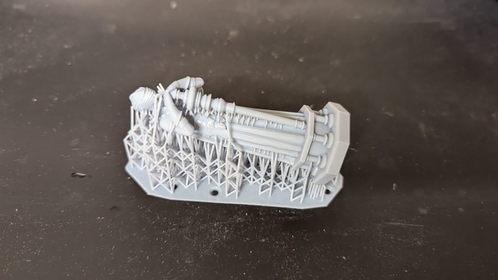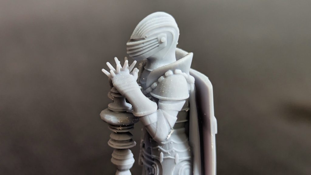 And here you can see a miniature after removing the supports without any sanding or post processing done to it other than curing and washing.