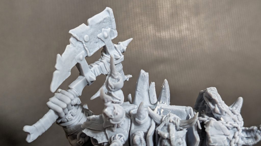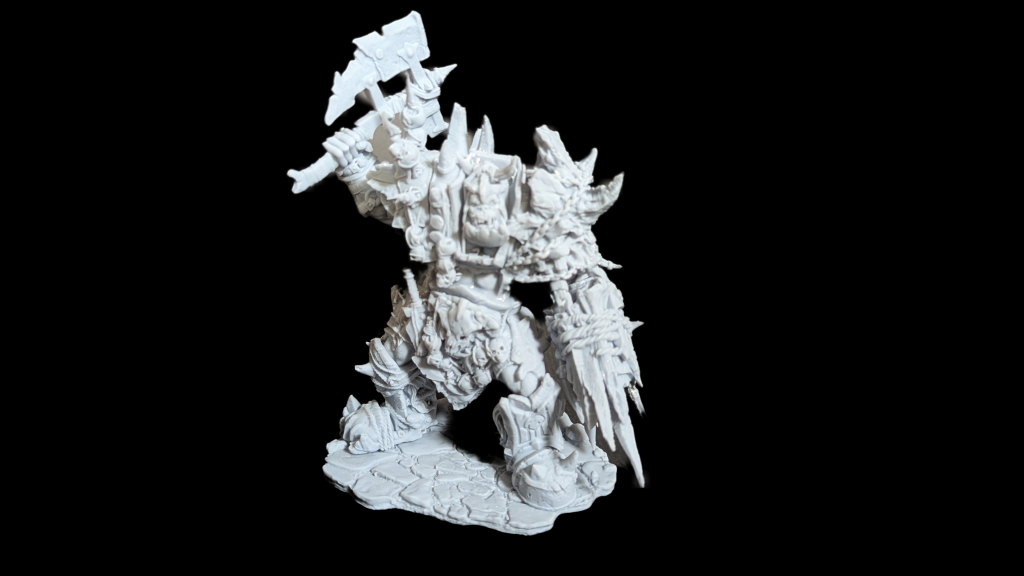 This Orc was printed with PAP10 resin which is HeyGears high-precision resin that is great for dimensional accuracy and highly detailed miniatures.