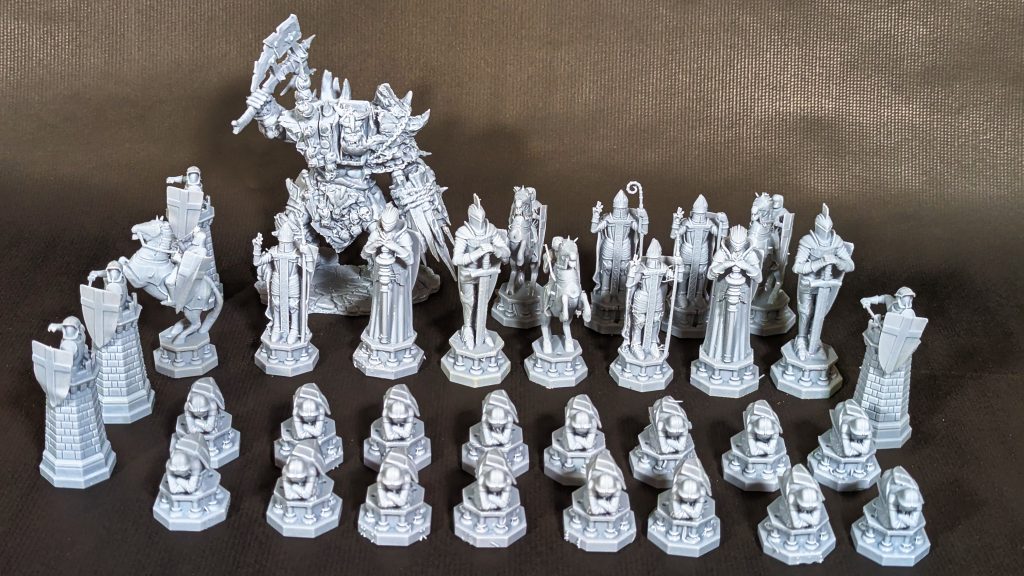 Here is the entire printed chess set. All printed on the RS Turbo with no visible flaws or failed prints.